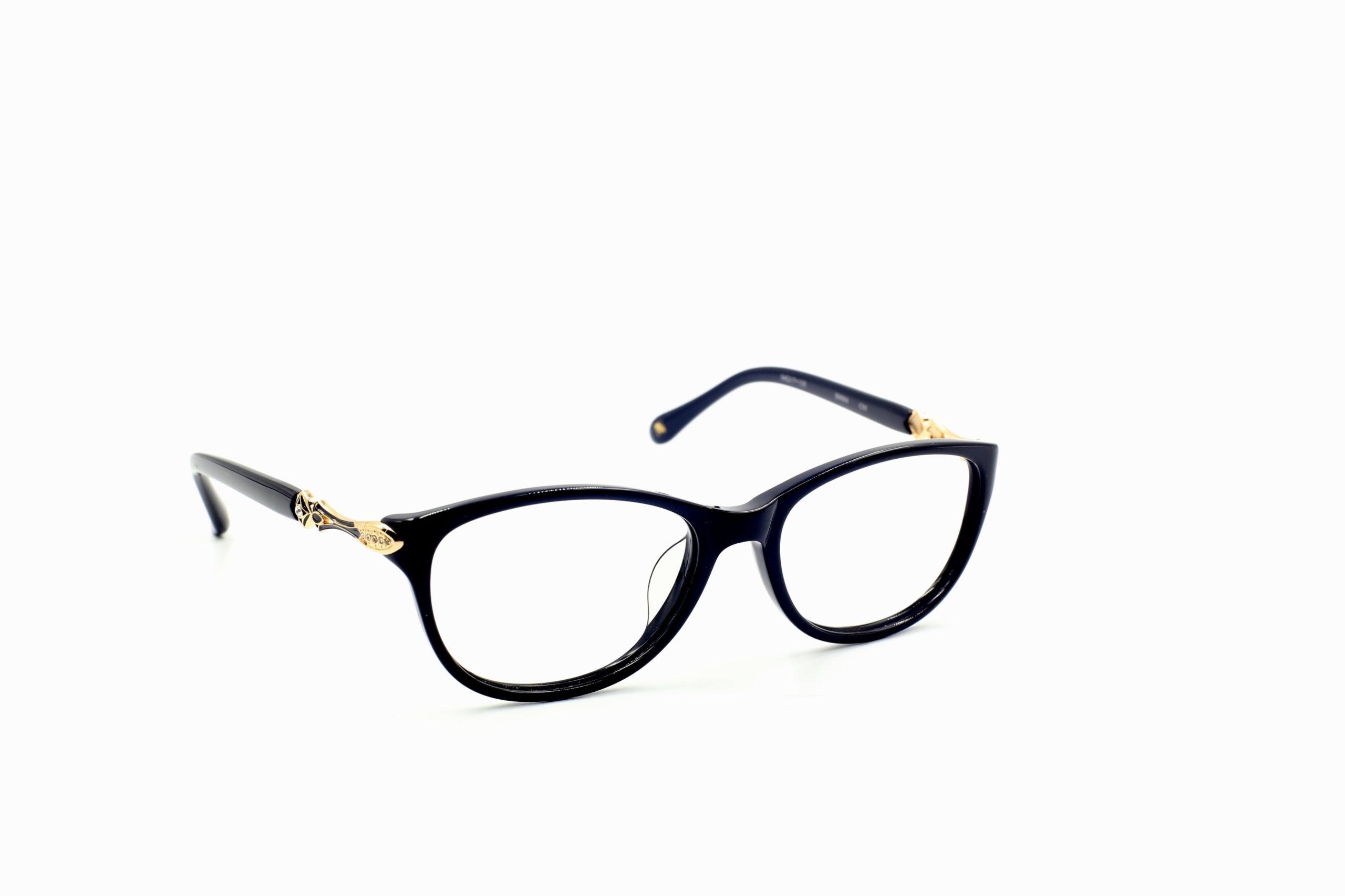 - FRAME BERWARNA HITAM PADA BAGIAN RIM DAN TERDAPAT MOTIF EMAS PADA AREA TAMPLE